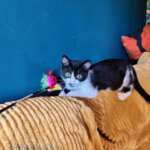 Vivi is een lief, klein meisje die samen met haar broers en zusjes een maand geleden gevangen werd ergens buiten. Hoewel ze al vrij oud was om te socialiseren, zag ik meteen dat er niets kwaads in haar schuilde. Ze was erg onder de indruk in het begin en verstopte zich nog vaak. Maar ze is gek op speeltjes en snoep. En daar heeft ze veel voor over dus nu springt ze vlot mee in de zetel met het hengeltje en nestelt zich dan spinnend en m’n arm. Pakken vindt ze nog een beetje spannend maar daar zijn we ook al volop stapje voor stapje mee aan het oefenen.