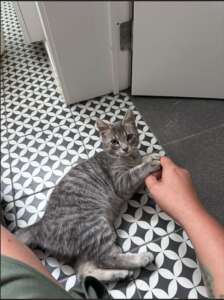 Dit kattinnetje van ongeveer 4.5 maand is komen aanlopen in de Overstraat te Diest. Ze is tam, niet gechipt. Ze zit in hospi bij DAP Shereren
